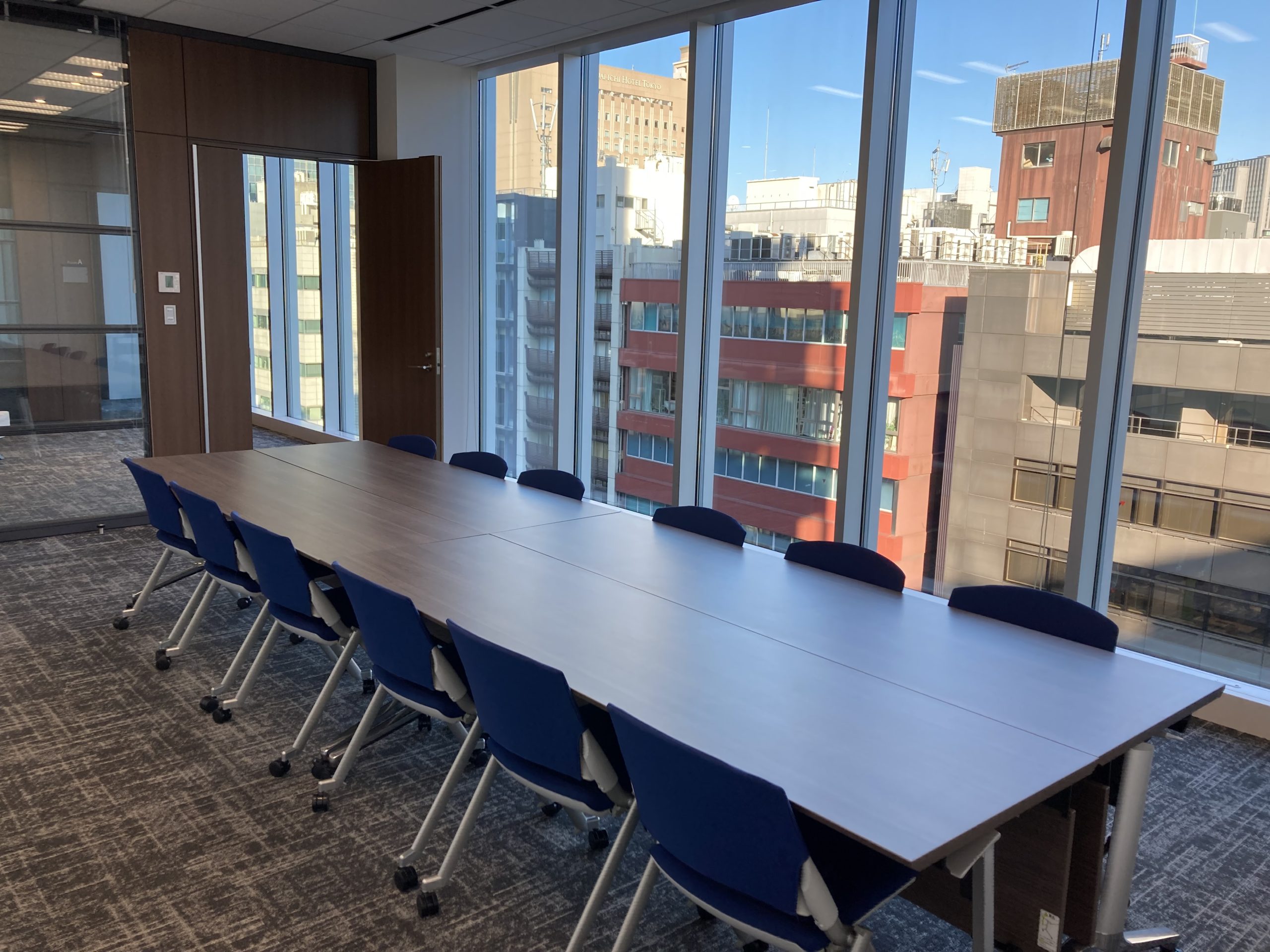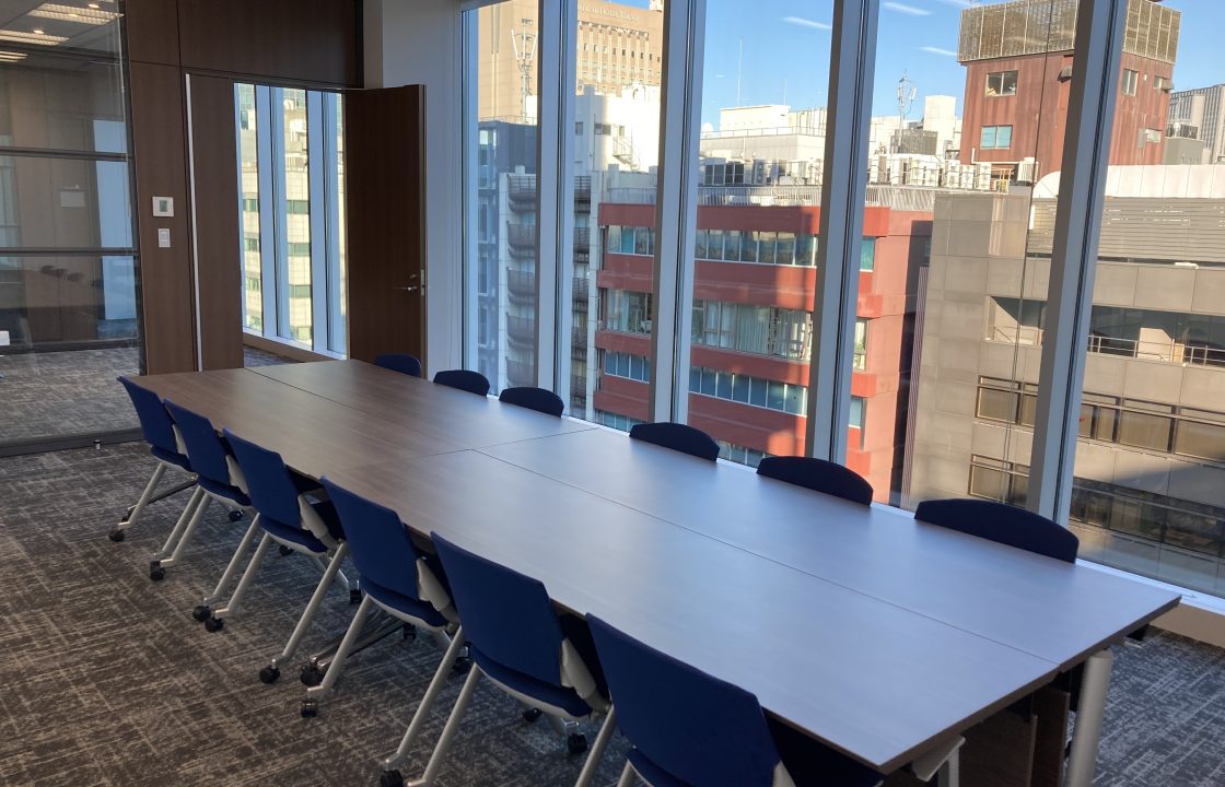 新橋駅周辺・汐留の高層ビル群を眺めながら洗練されたスペースで商談や会議を行えます。